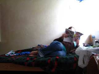 Last week, the Education 09 group got together in Dedza for our Mid-Service Training, and everyone was delighted to benefit from the contents of a package of candy and trashy magazines and other goodies from Angie. (Elisabeth, below, catches up on Taylor Swift. I'm not actually sure who that is.) Thanks, Ang!